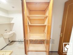 室内洗濯機置場がございますので、天候に左右されず洗濯していただけます。上部に棚があるので消耗品などをスッキリ置けるのも嬉しいポイント。