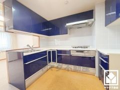 使いやすさとデザイン性を両立。深みのある青色で統一された落ち着きと清涼感のあるデザインが魅力のシステムキッチンです。キッチン収納の多さもお料理を楽にしてくれるポイント。