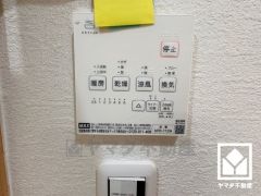 浴室暖房乾燥機付き。真冬の寒い浴室を暖かく、また雨の日の洗濯物の乾燥にと多用途に活躍する機能です。