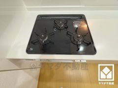 カウンターキッチンなので配膳や片付けがしやすく、お料理中でもお子様の様子が分かって安心です。毎日の料理がもっとスムーズになる、便利な3口コンロ付き。