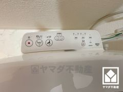 明るく清潔感溢れるトイレです。温水洗浄便座付きで、季節を問わずいつでも温かい便座をお使いいただけます。