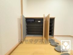 玄関にはシューズボックスを完備。家族の靴もしっかり収納できるので、玄関がいつも片付き、気持ちよくお客様を迎えられます。