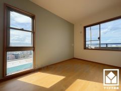 約4.5帖の南西側洋室です。3面採光のお部屋で、通風・陽当たり良好です。