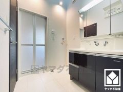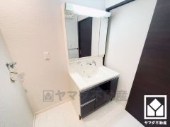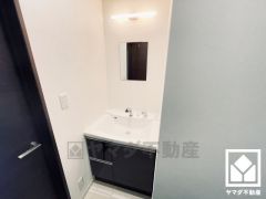 1階にも洗面台がございます。洗面ボウルが広めなので、忙しい朝でも身支度がしやすく時短になります。