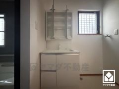 収納豊富でスッキリお使い頂ける洗面台です。洗面ボウルが広めなので、忙しい朝でも身支度がしやすく時短になります。