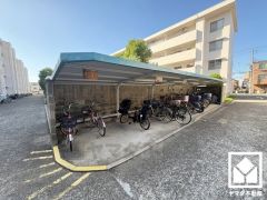 屋根付き駐輪場なので、雨や風、直射日光から自転車を守ることができます。バイク置き場もございます。(ともに使用料無償)