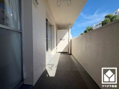 南向きバルコニーで陽当たり、風通し良好。たっぷりの洗濯物も気持ちよく乾きます。お掃除道具などを収納できる物置付き。
