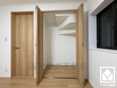 玄関にはたっぷりの収納スペースを完備。家族の靴もしっかり収納できるので、玄関がいつも片付き、気持ちよくお客様を迎えられます。