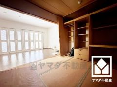 約6帖の和室です。押し入れや壁面収納など収納スペースが充実していて整理整頓しやすいお部屋です。