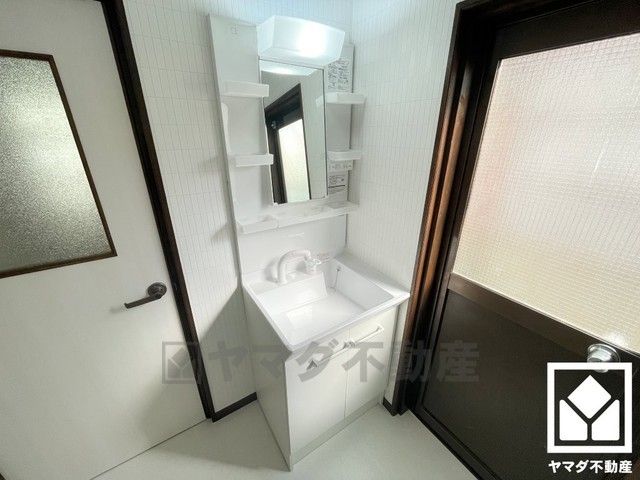 収納豊富でスッキリお使い頂ける3面鏡の洗面台です。洗面ボウルが広めなので、忙しい朝でも身支度がしやすく時短になります。