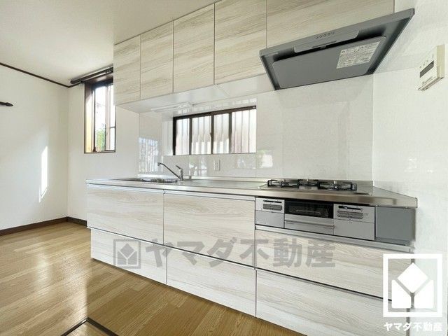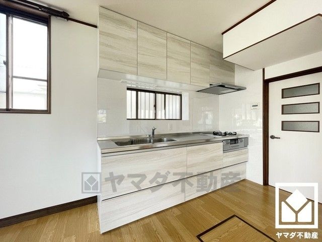 キッチンは空間を有効活用できる壁付けタイプ。窓がございますので、昼間は手元が明るく、お料理がはかどります。