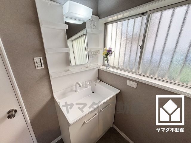 収納付きでスッキリお使い頂ける洗面台です。洗面ボウルが広めなので、忙しい朝でも身支度がしやすく時短になります。