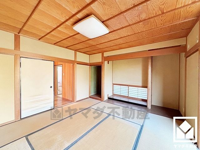 襖で仕切られた大きな板の間があり、大きめの家具なども設置可能。くつろげる縁側として、また洗面室が近いためランドリースペースなどとしてもご活用いただけそうです。
