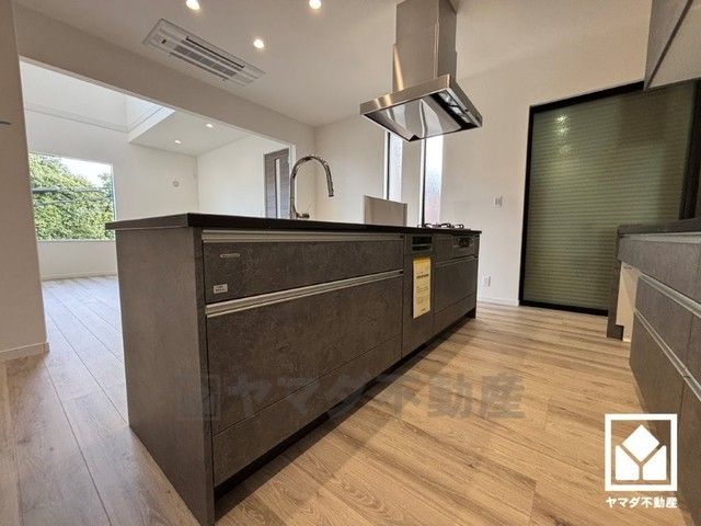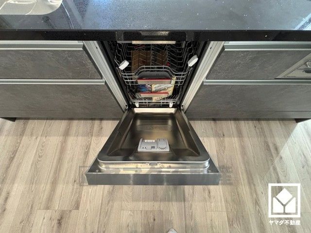 フロントオープンタイプの大型食器洗浄機付き。食後の洗い物がラクラクです。