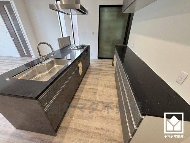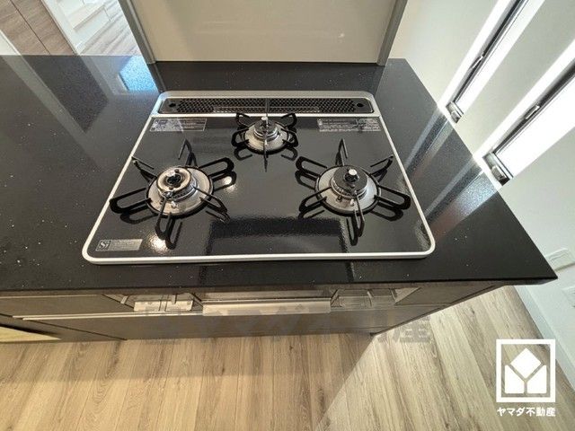 家族のごはん作りがはかどる。同時調理ができる3口コンロ付き。スタイリッシュなガラストップで、お手入れもしやすいです。
