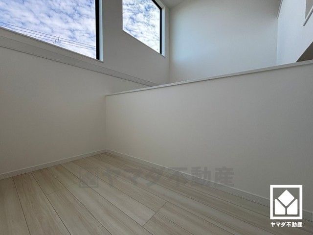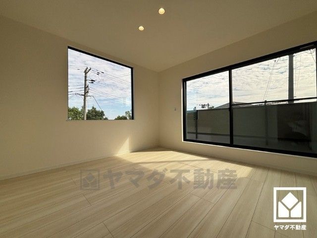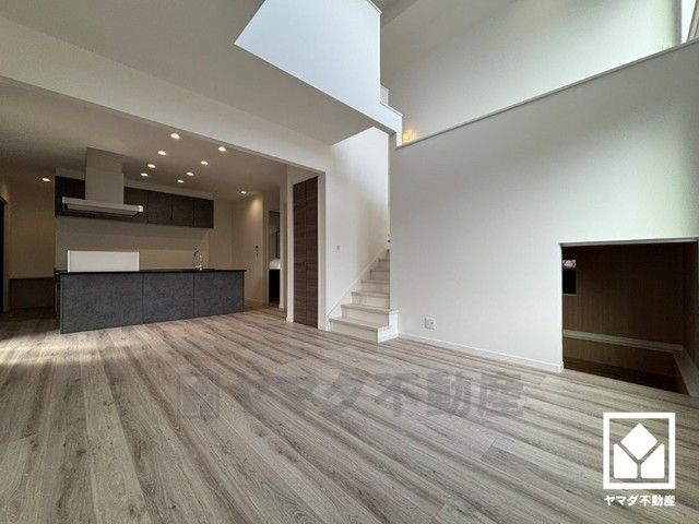 リビングは一部吹抜けとなっています。自然光を取り込む、開放感あふれる暮らし。大きな窓から隅々まで光が降り注ぐ、明るく心地の良い空間。天井埋込エアコン付きです。