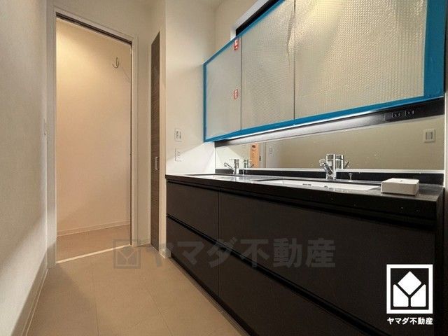 収納付きでスッキリお使い頂けるワイドな洗面化粧台です。ダブルボウルなので、忙しい朝でも家族全員が身支度がしやすく時短になります。