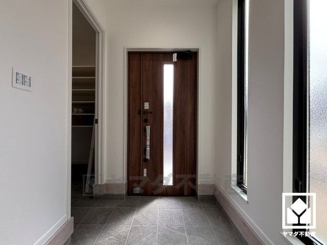 豊富に設置された窓から光が差し込み、外出時にも帰宅時にも、明るい気持ちになれる玄関です。
