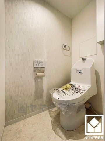 明るく清潔感溢れるトイレです。温水洗浄便座付きで、季節を問わずいつでも温かい便座をお使いいただけます。