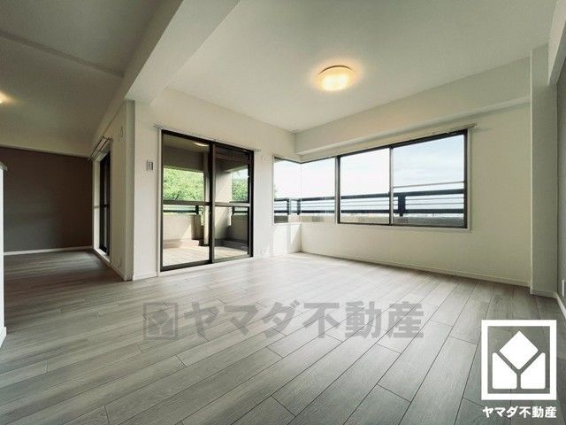 南西側・南東側の2面バルコニーで陽当たり、風通し良好。高台に建つマンションの6階建て5階部分で前面に視界を遮る高い建物がなく、開放的な景色が広がります。