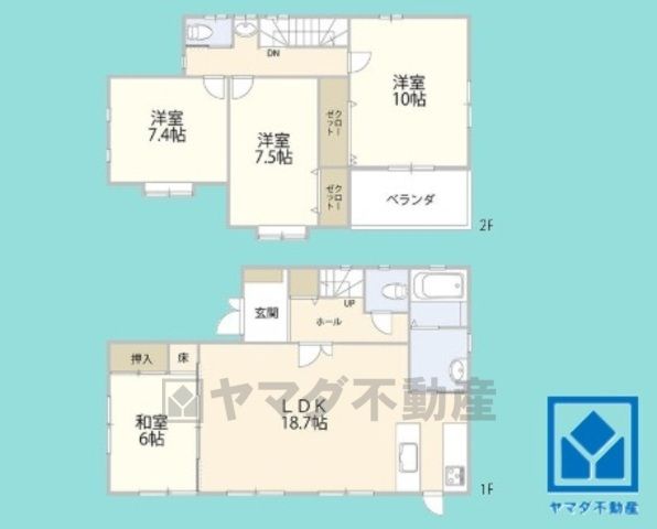 | 間取り詳細 | LDK18.7畳(1F)、和6畳(1F)、洋10畳(2F)、洋7.5畳(2F)、洋7.4畳(2F) | 都市計画 | 市街化区域 |