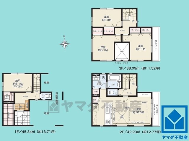 間取り詳細 | その他6.1畳(1F)、LDK16.6畳(2F)、洋6.1畳(3F)、洋5.7畳(3F)、洋5畳(3F) | 都市計画 | 市街化区域 |