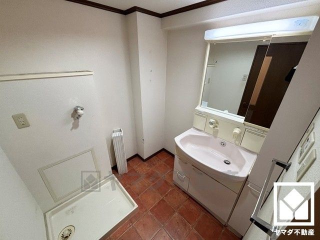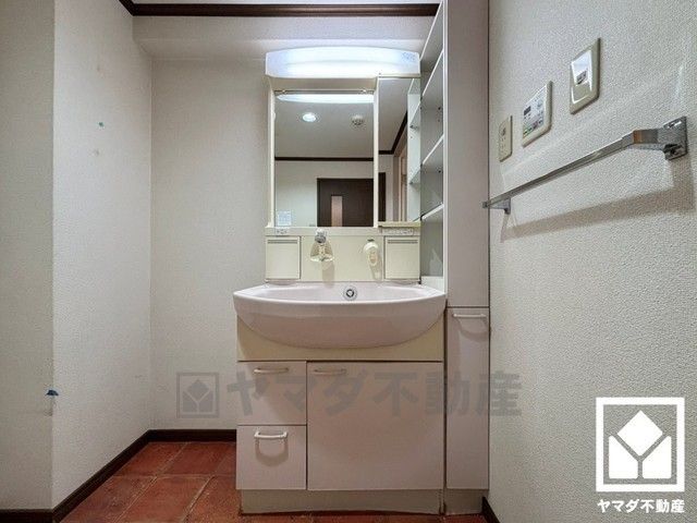 収納付きでスッキリお使い頂ける洗面台です。洗面ボウルが広めなので、忙しい朝でも身支度がしやすく時短になります。