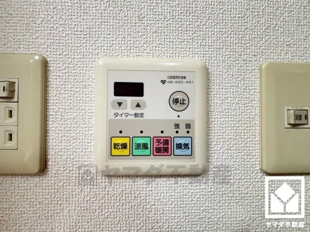 浴室暖房乾燥機付き。真冬の寒い浴室を暖かく、また雨の日の洗濯物の乾燥にと多用途に活躍する機能です。