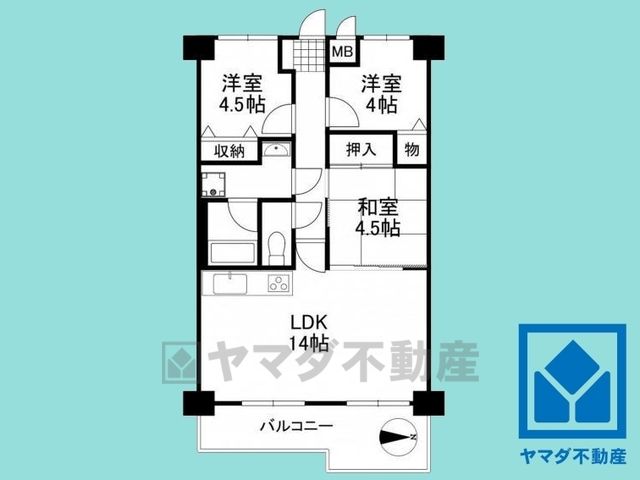 LDK14畳、和4.5畳、洋4.5畳、洋4畳 |