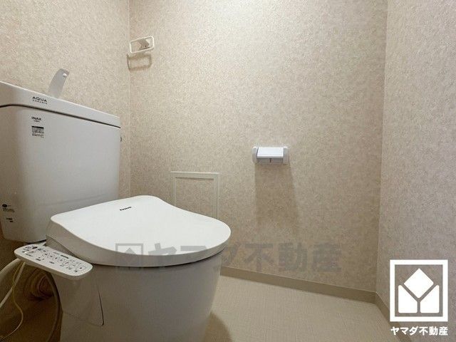 明るく清潔感溢れるトイレです。温水洗浄便座付きで、季節を問わずいつでも温かい便座をお使いいただけます。