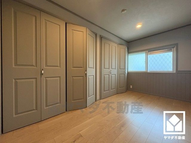 約5.6帖の洋室です。大きなクローゼット付きのお部屋で整理整頓しやすいです。全居室に窓がございます。明るい陽光がたっぷり差し込む心地よい生活空間です。