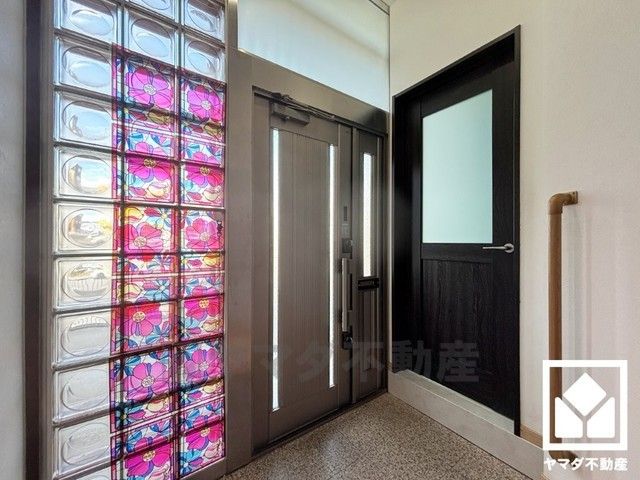 遊び心のあるガラスブロックが魅力的な玄関デザイン。柔らかな光が差し込み、外出時にも帰宅時にも、明るい気持ちになれる玄関です。