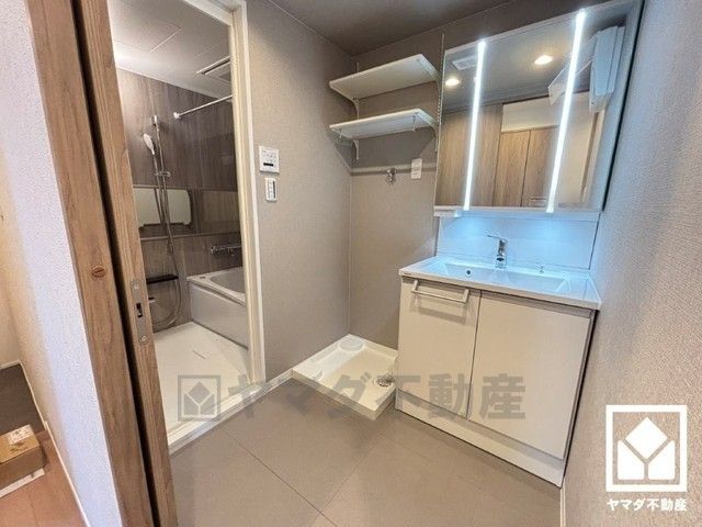 室内洗濯機置場がございますので、天候に左右されず洗濯していただけます。上部に棚があるので消耗品などをスッキリ置けるのも嬉しいポイント。