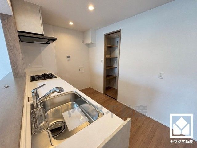 キッチンにはパントリーがございます。まとめ買いしても心配要らずの収納力です。