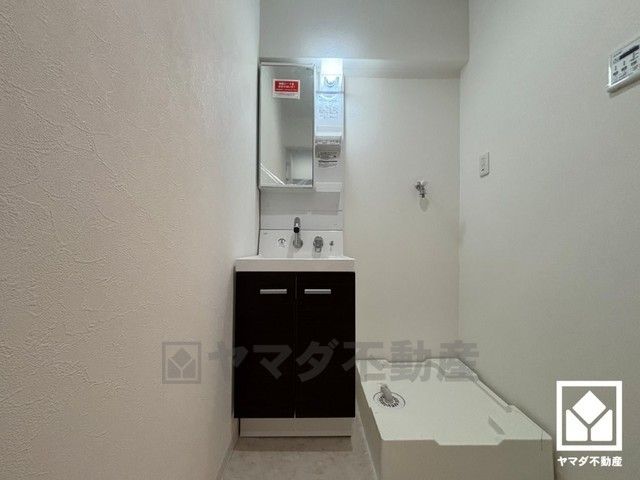 収納付きでスッキリお使い頂ける洗面台です。室内洗濯機置場もございますので、天候に左右されず洗濯していただけます。