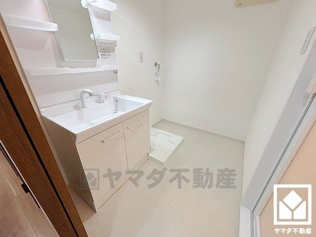 収納付きでスッキリお使い頂ける洗面台です。洗面ボウルが広めなので、忙しい朝でも身支度がしやすく時短になります。