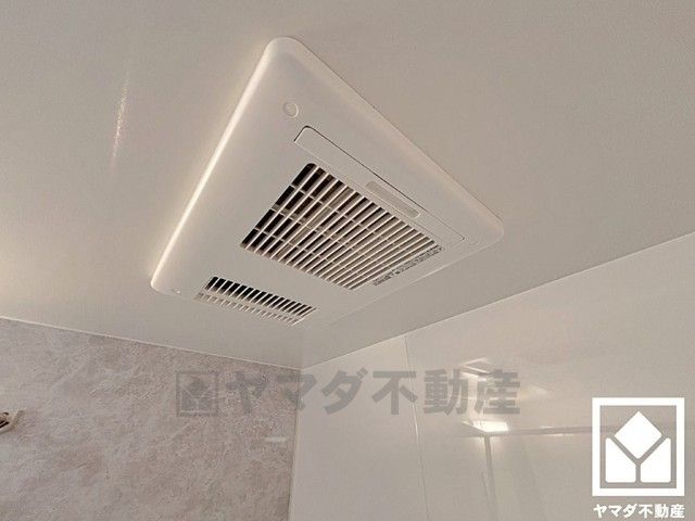 浴室暖房乾燥機付き。真冬の寒い浴室を暖かく、また雨の日の洗濯物の乾燥にと多用途に活躍する機能です。