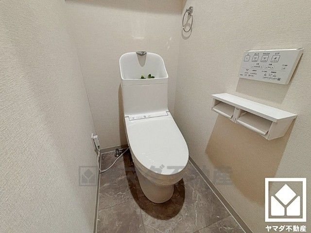 明るく清潔感溢れるトイレです。温水洗浄便座付きで、季節を問わずいつでも温かい便座をお使いいただけます。