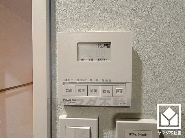 浴室暖房乾燥機付き。真冬の寒い浴室を暖かく、また雨の日の洗濯物の乾燥にと多用途に活躍する機能です。