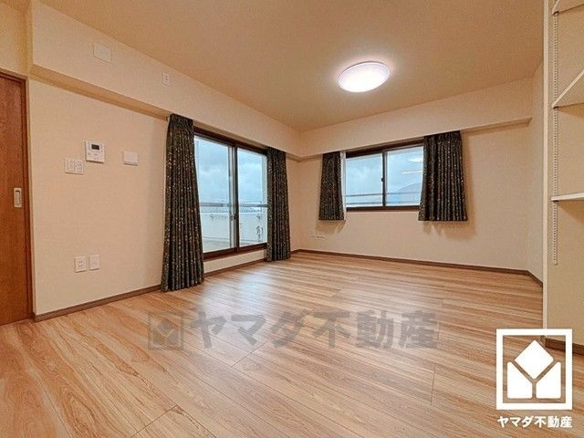約8.5帖の洋室です。ルーフバルコニーにつながるお部屋で、通風・陽当たり良好。