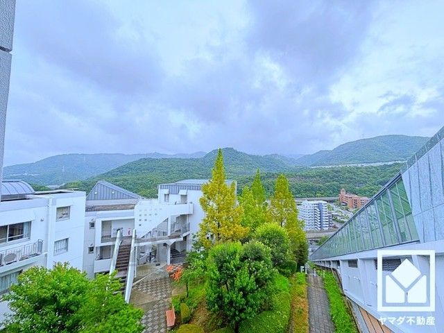 約6.4帖の洋室から出入りできる南向きのバルコニーがございます。前面に視界を遮る高い建物がなく、開放的な景色が広がります。