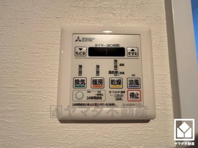 浴室暖房乾燥機付き。真冬の寒い浴室を暖かく、また雨の日の洗濯物の乾燥にと多用途に活躍する機能です。