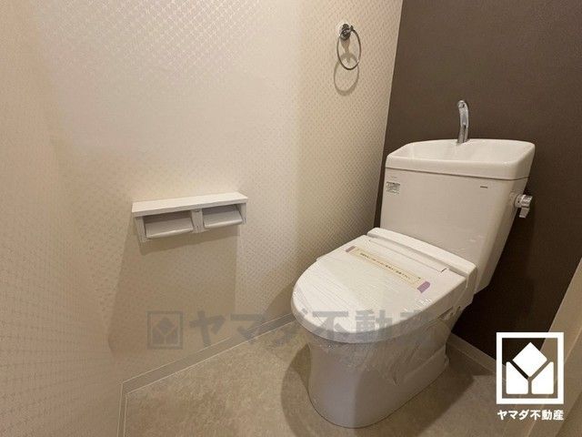 明るく清潔感溢れるトイレです。2連トイレットペーパーホルダーなのでお取替えの手間が軽減できます。