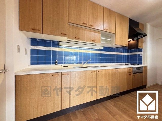 キッチンは空間を有効活用できる壁付けタイプ。作業スペースが広々としており、お料理がはかどりそうです。