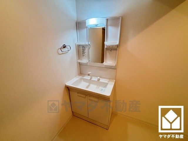 収納豊富でスッキリお使い頂ける洗面台です。洗面ボウルが広めなので、忙しい朝でも身支度がしやすく時短になります。
