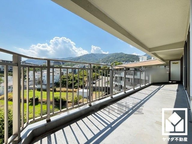 南西向きバルコニーで陽当たり、風通し良好。広々としているため、お洗濯物をたっぷりと干す事ができます。前面に視界を遮る高い建物がなく、緑に囲まれた開放的で清々しい景色が広がります。