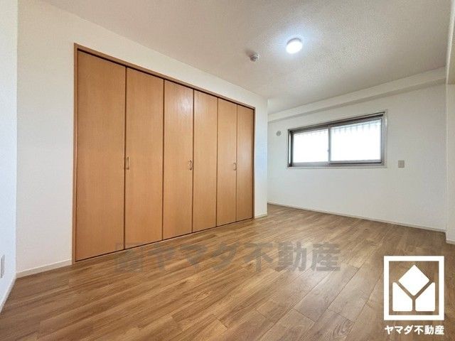 約8帖の洋室です。大きなクローゼット付きで整理整頓しやすいです。