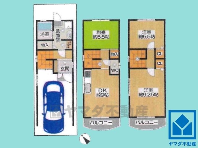 DK9畳(2F)、和5.5畳(2F)、洋9.2畳(3F)、洋5.5畳(3F) |