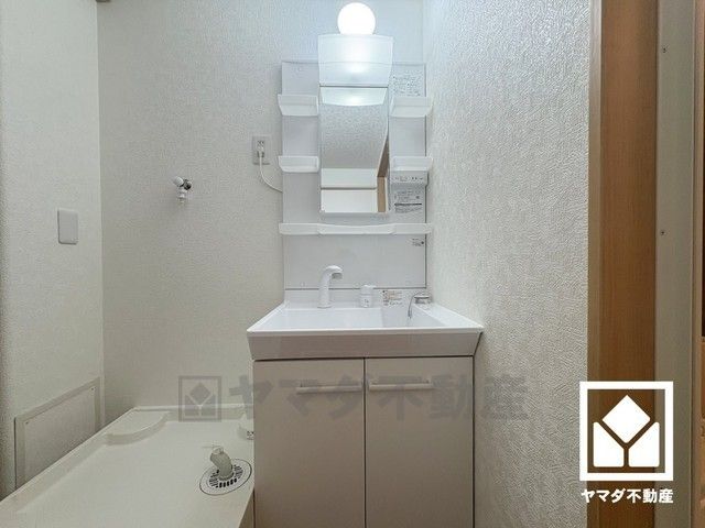 収納豊富でスッキリお使い頂ける洗面台です。洗面ボウルが広めなので、忙しい朝でも身支度がしやすく時短になります。