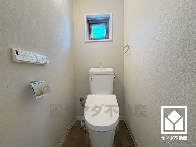 明るく清潔感溢れるトイレです。温水洗浄便座付きで、季節を問わずいつでも温かい便座をお使いいただけます。
